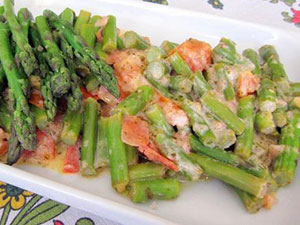 7. Finalmente, vierta la salsa sobre los espárragos y gratine en el horno, hasta que la superficie esté dorada.